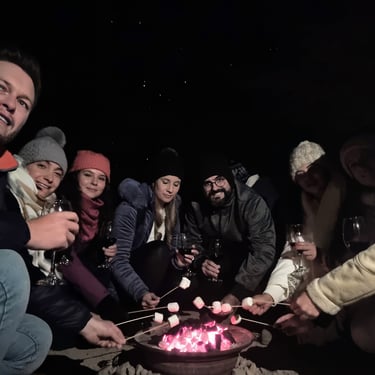 Relax by a warm fire while enjoying a snack with Chilean wine, hot beverages, and a delightful selection of local and artisanal products.